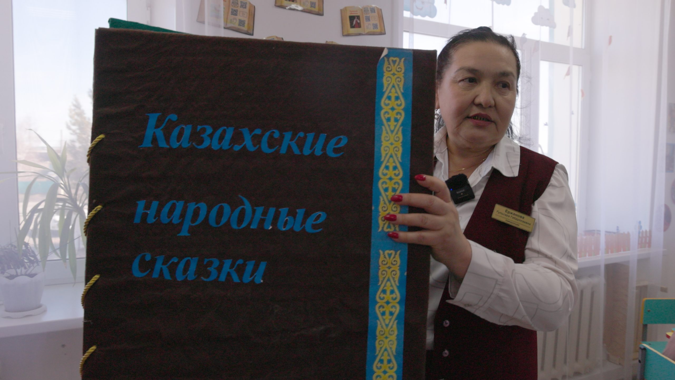 А в группе предшкольной подготовки нам показали книгу – гигант казахских сказок. Ее не просто читают детям. На ее страницах можно выкладывать сюжет того или иного произведения.